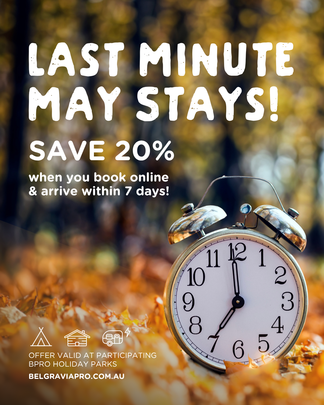 Book online and arrive within 7 days at Creswick Holiday Park to enjoy a whopping 20% off your stay!